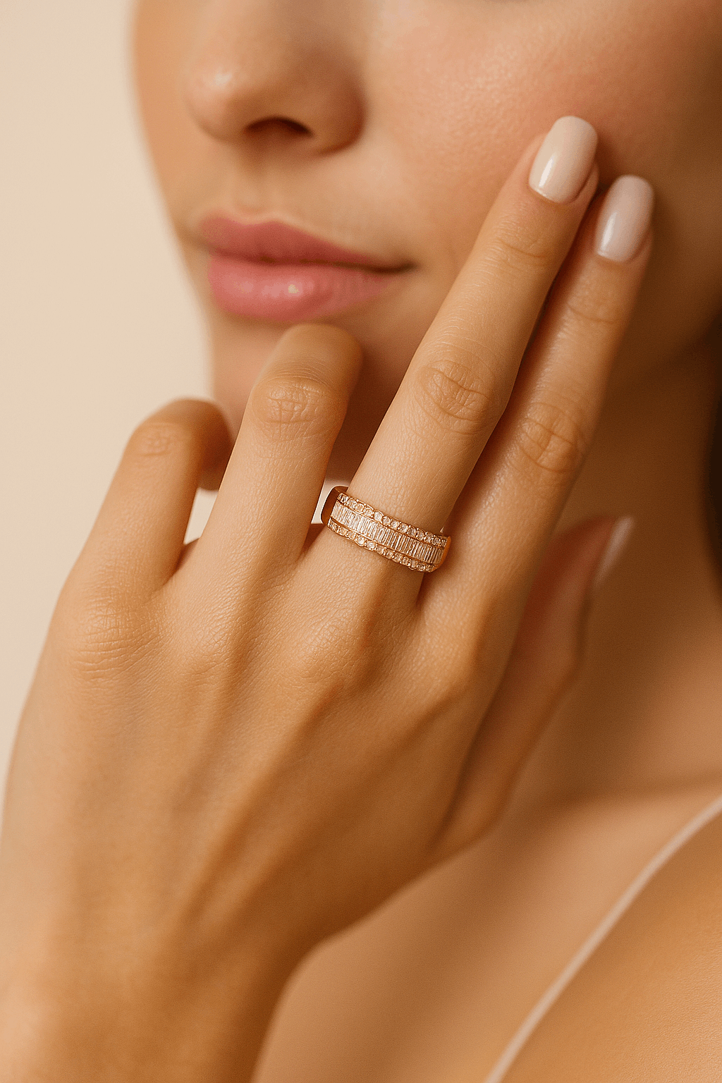 14K Yellow Gold Band Diamond Fashion Ring with 0.59Tw Baguette Diamonds and 0.44Tw Round Diamonds