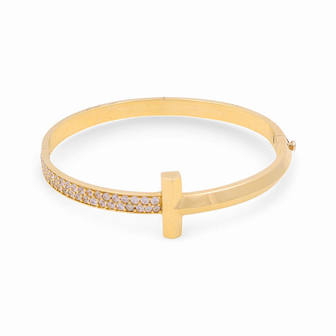 14K Yellow Gold Bangle with Cz Women's Bracelet