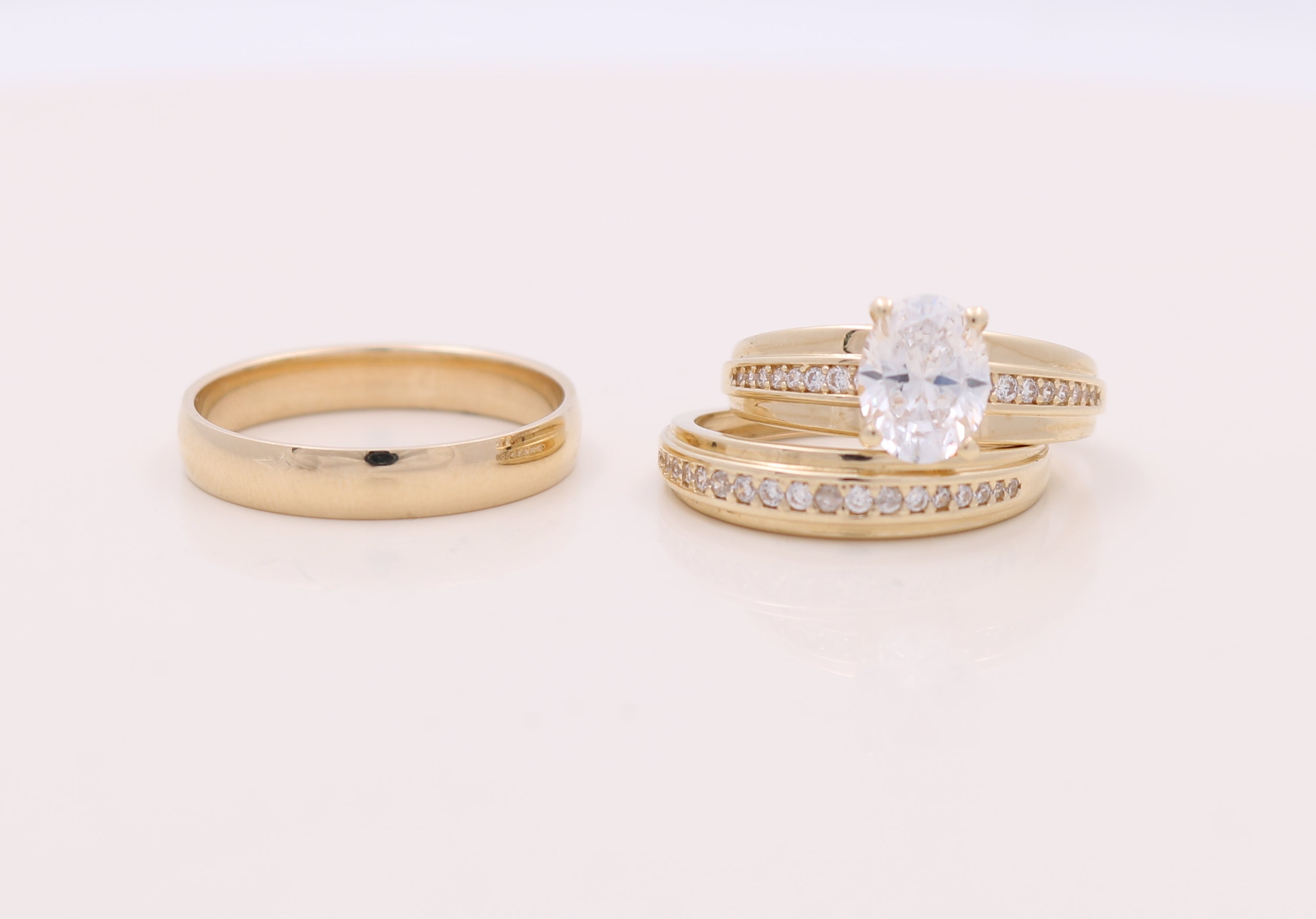 14K Yellow Gold Bridal Set with CZ and Wedding Band Fashion Ring