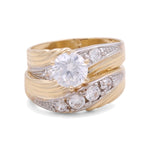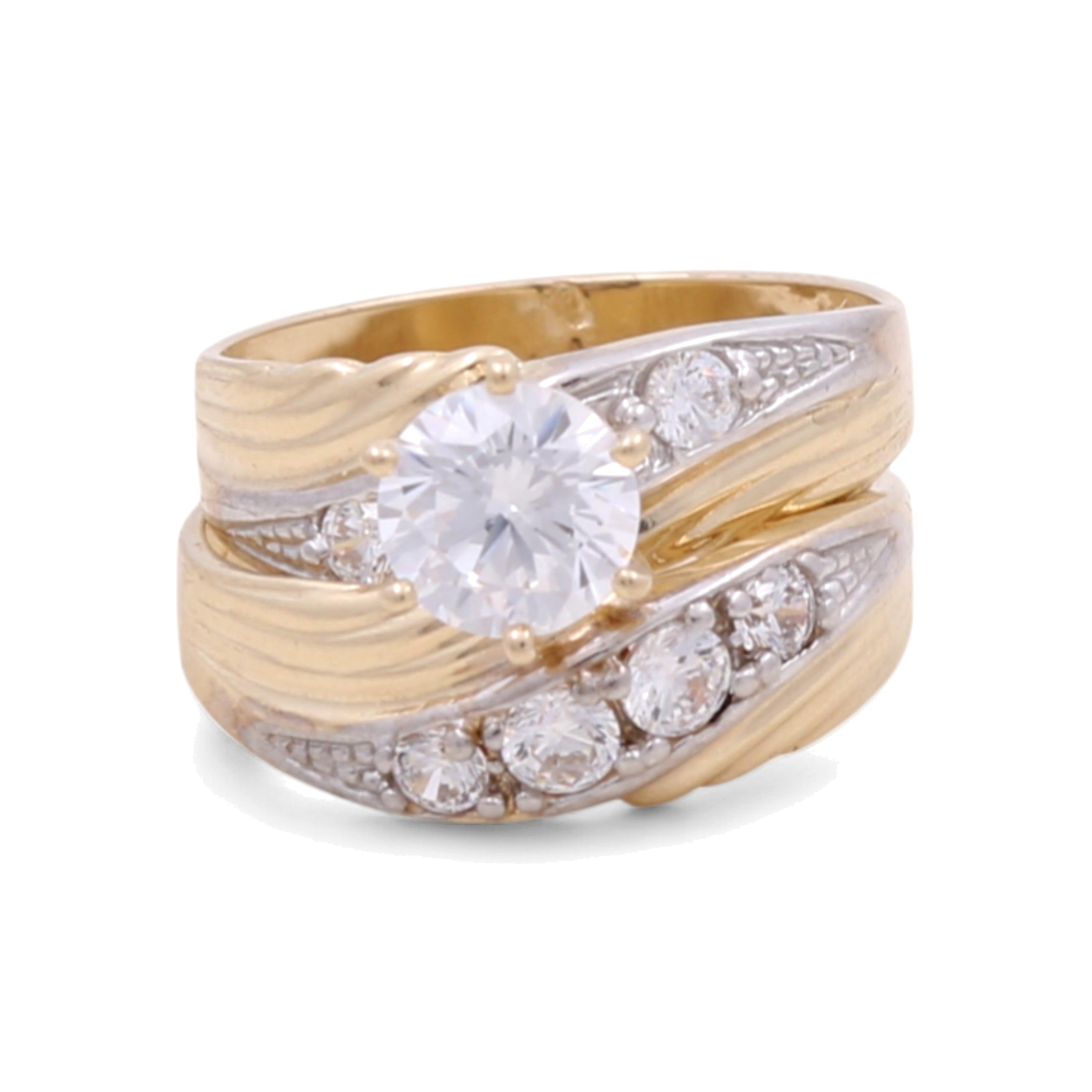 14K Two Tone White/Yellow Gold Bridal Set with CZ Fashion Women's Ring