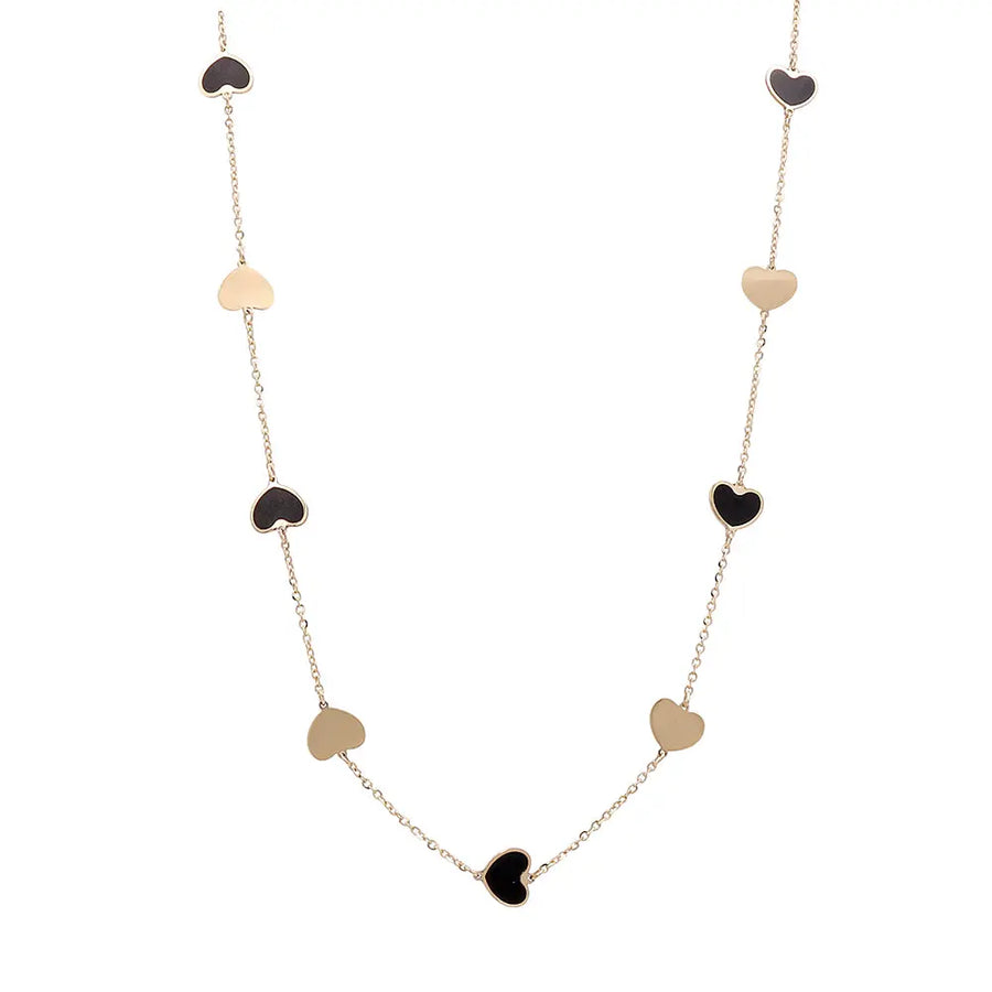 14K Yellow Gold Fashion Hearts Onyx and Gold Necklace