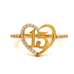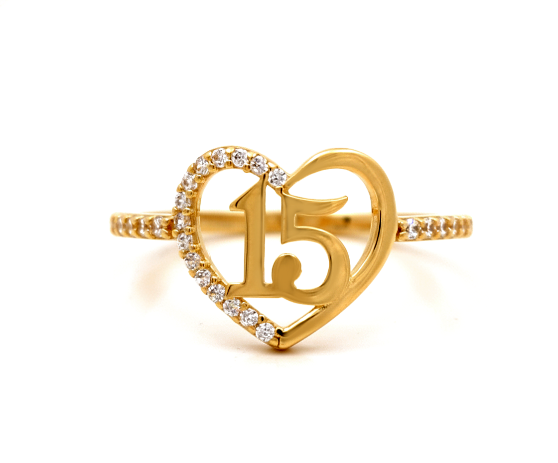 14K Yellow Gold Heart with 15 CZ Fashion Women's Ring