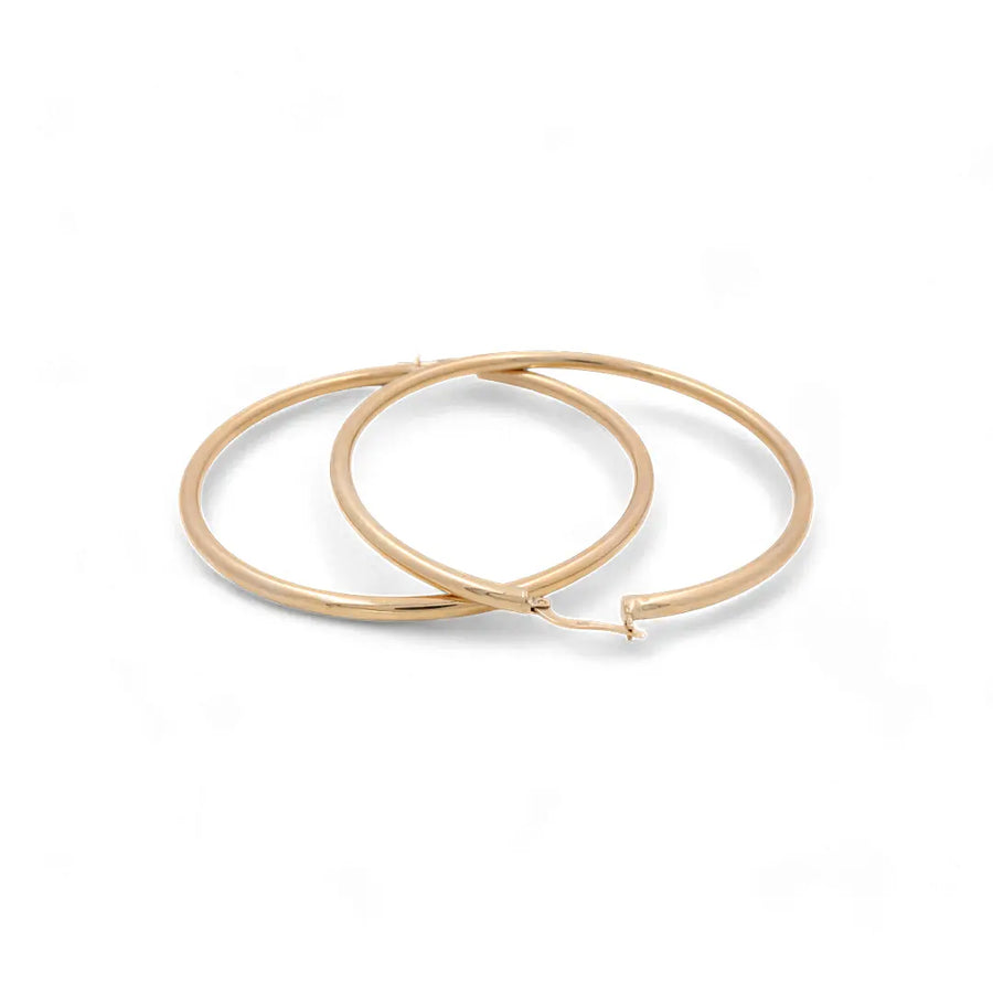 14K Yellow Gold Large Hoop Women's Earrings Add a touch of elegance to any outfit with these stunning 14K yellow gold hoop earrings. Crafted with care and precision, these large hoops are the perfect accessory for any stylish woman. The beautiful gold hue will catch the light and enhance your natural beauty. You'll feel confident and glamorous every time you wear them!