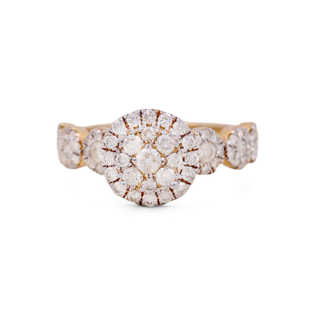 Make a bold statement with this magnificent 14K yellow gold engagement ring, crowned with a radiant 1.30-carat round diamond that commands attention. The classic round brilliant cut maximizes light return and sparkle, delivering the timeless beauty that has captivated hearts for generations. Set in premium 14K yellow gold, this ring offers the perfect balance of durability and luxury, with warm metallic tones that amplify the diamond's natural fire and brilliance. The sophisticated solitaire design ensures your center stone remains the focal point, allowing its exceptional quality to shine without distraction. Ideal for those who appreciate enduring elegance and substantial presence, this ring represents a significant milestone and a promise of forever. An heirloom-quality piece that transcends trends and celebrates the depth of your commitment.