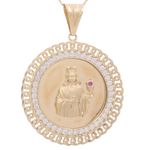 14K Yellow Gold Round Religious Pendant with Zirconias