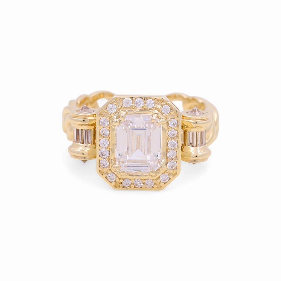 14K Yellow Gold Square White with Cz Fashion Women's Ring
