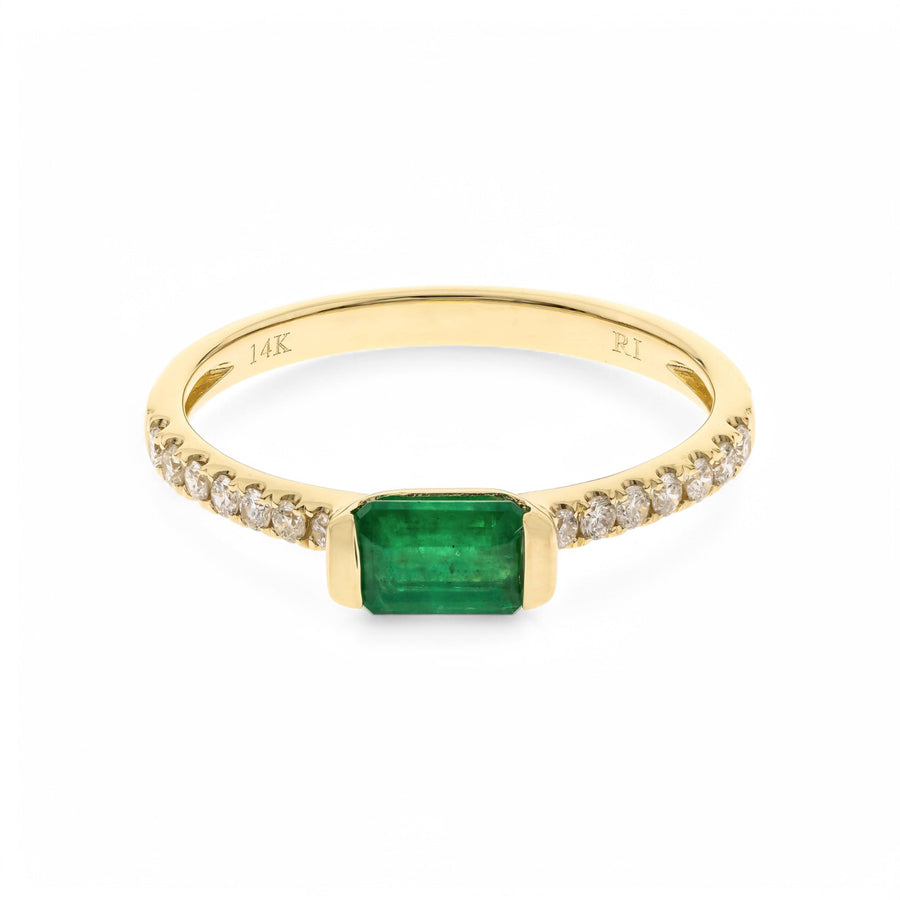 14K Yellow Modern Fashion Ring with 0.62Tw Rectangular Cushion Emeralds and 0.19Tw Round Diamonds