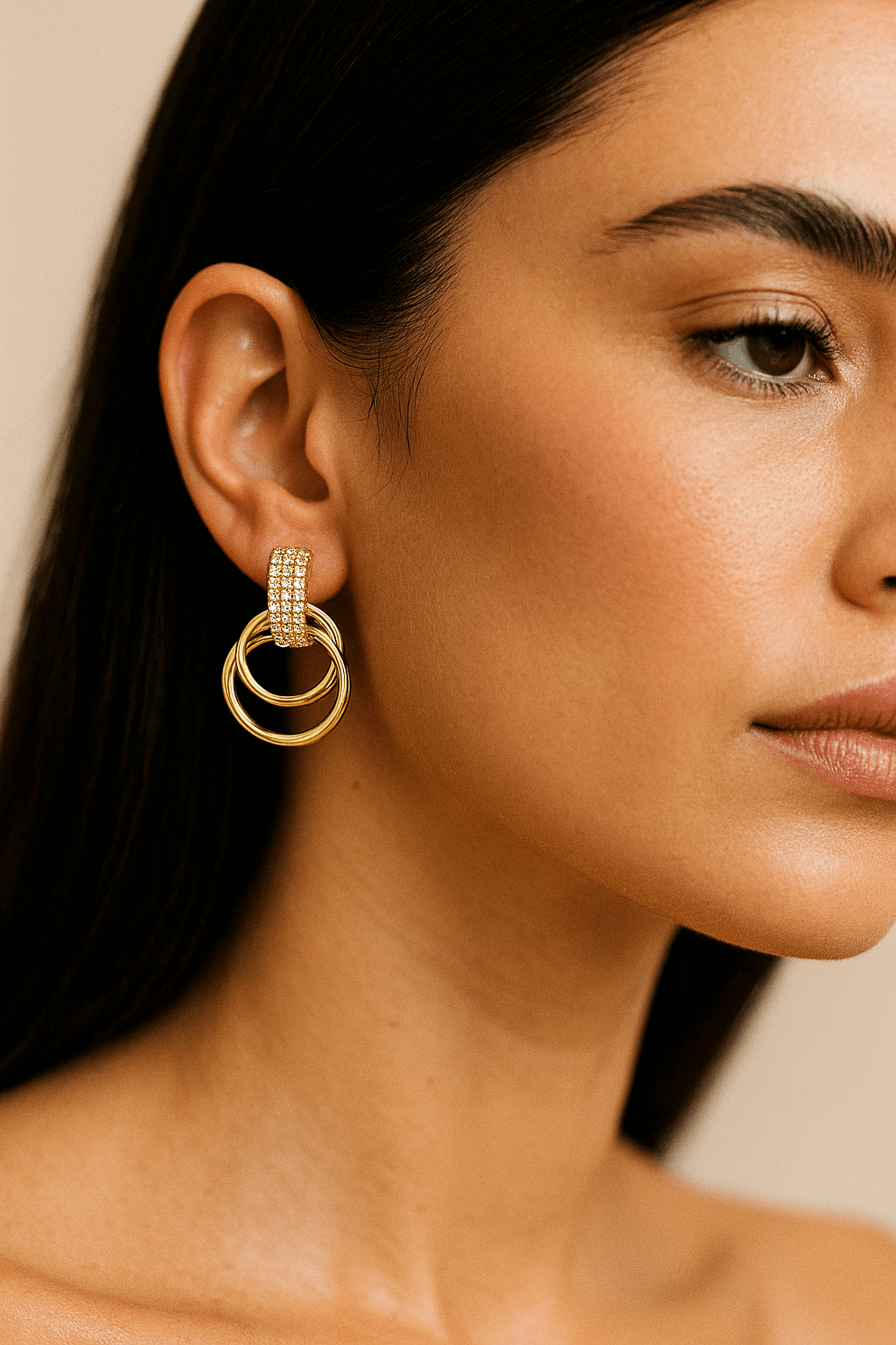 18K Yellow Gold Drop Diamond Earrings with 0.30Tw Round Diamonds