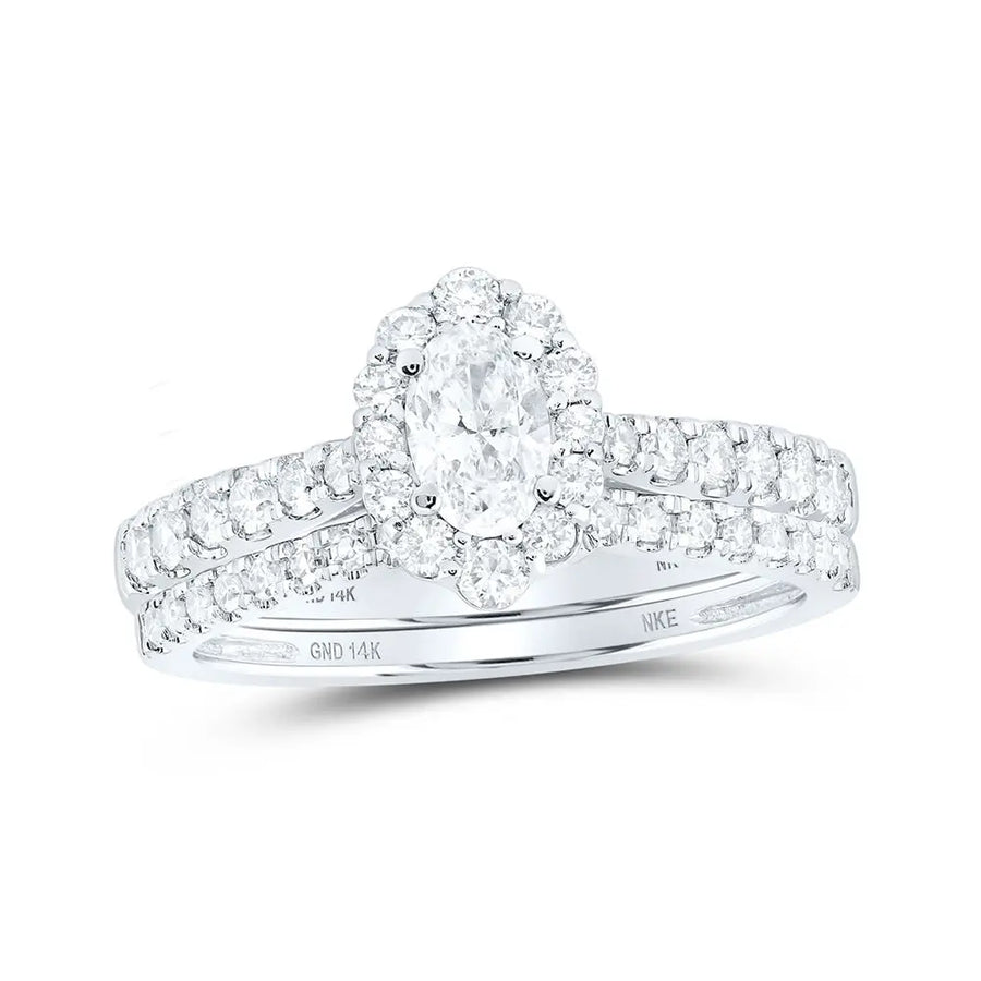 14k White Gold Oval Diamond Nicole's Dream Collection Halo Bridal Wedding Ring Set 1 Cttw (Certified)