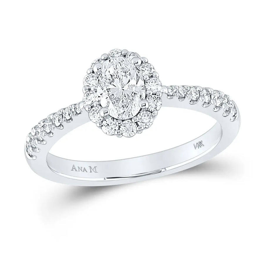 14k White Gold Oval Diamond Halo Bridal Engagement Ring 1 Cttw (Certified)