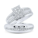 Round Diamond Square Matching Wedding Ring Set 1/2 Cttw