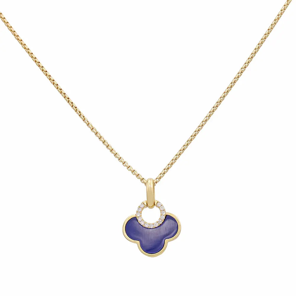 The necklace is perfect for any occasion, whether it's a night out or a special event. The lapislazuli stone adds a touch of elegance and sophistication to the necklace, making it a truly one-of-a-kind piece. With its timeless design, this necklace is sure to become a favorite in your jewelry collection.